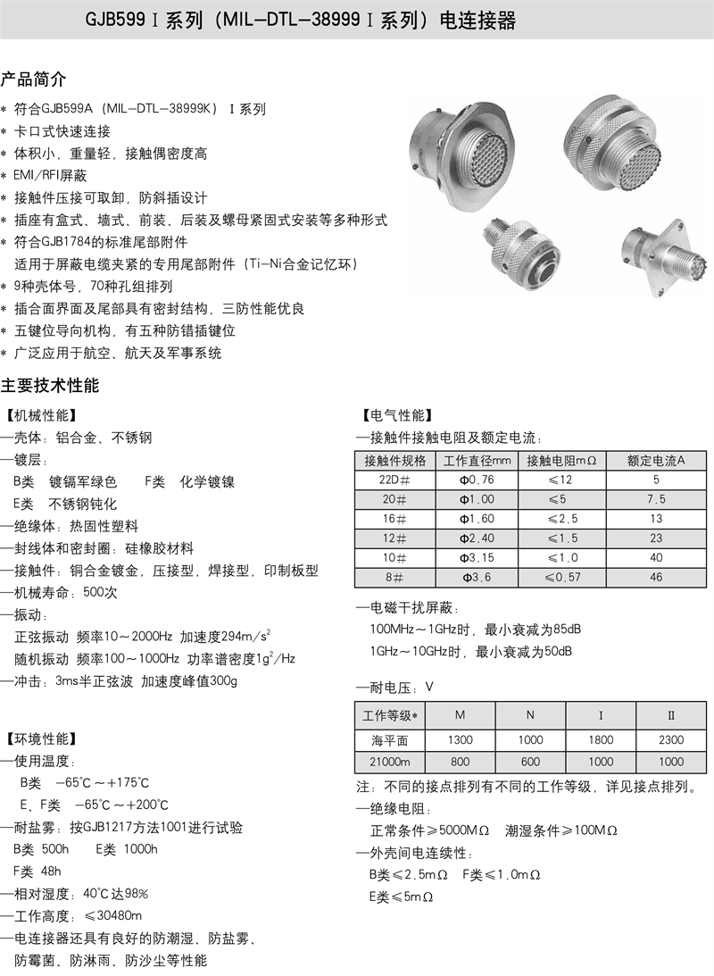 GJB599 I系列(MIL-DTL-38999 I系列)电连接器