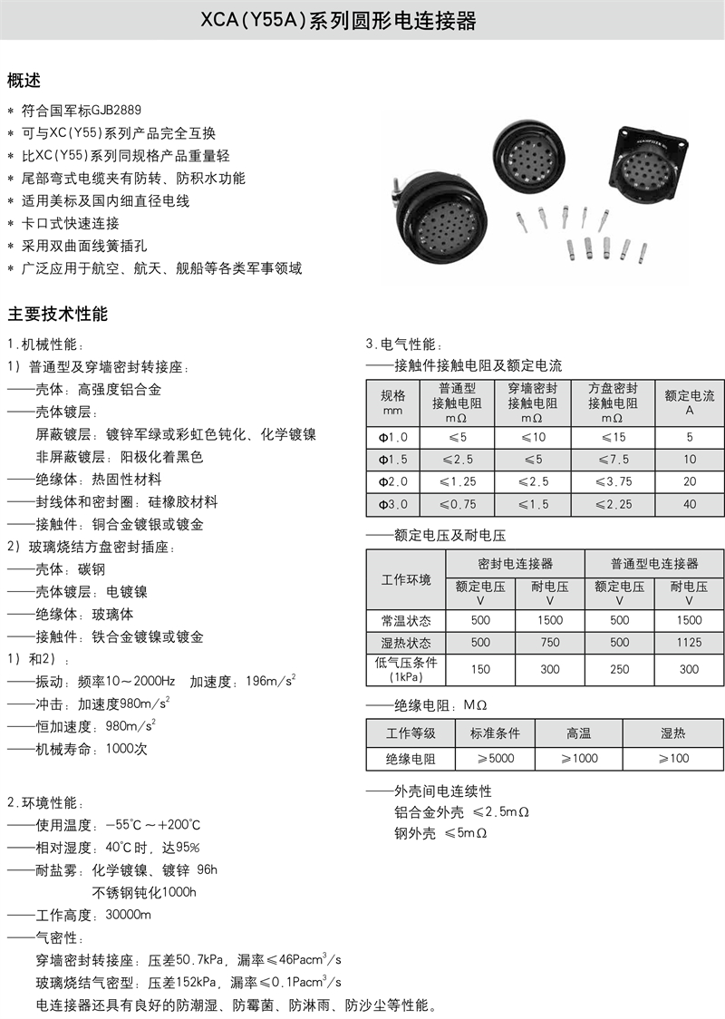 XCA(Y55A)系列圆形电连接器