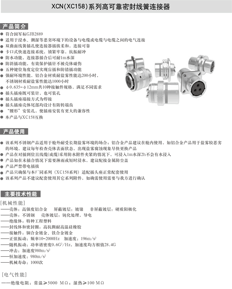 XCN(XC158)系列高可靠密封线簧连接器