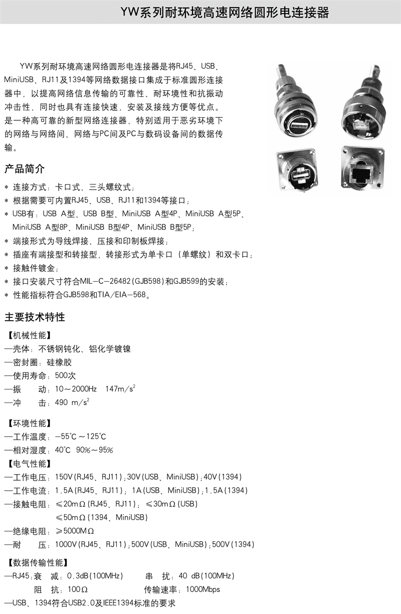 YW系列耐环境高速网络圆形电连接器