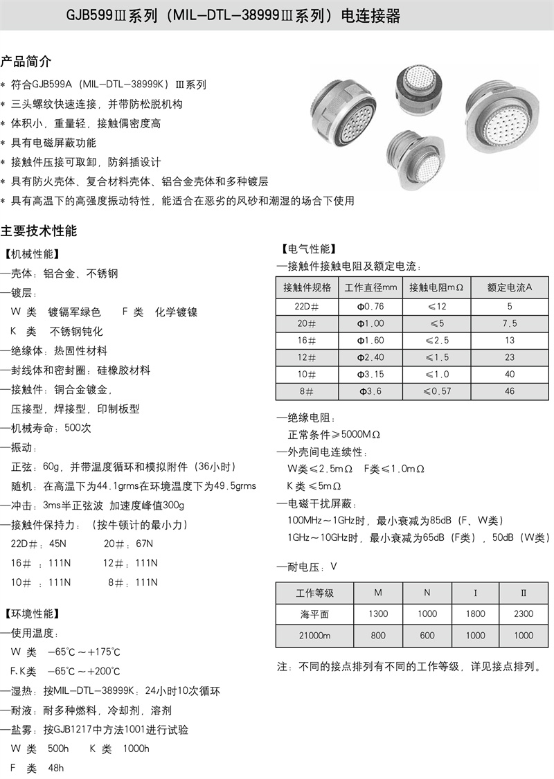 GJB599 Ⅲ系列(MIL-DTL-38999 Ⅲ系列)电连接器