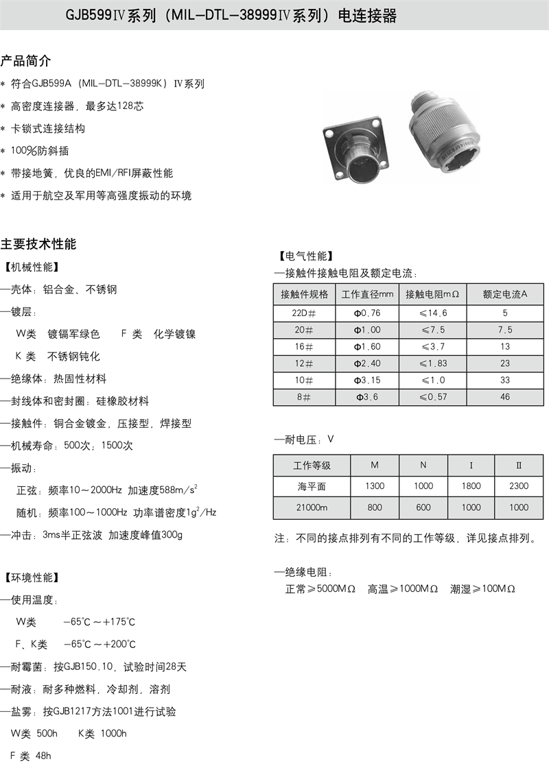 GJB599 Ⅳ系列(MIL-DTL-38999 Ⅳ系列)电连接器